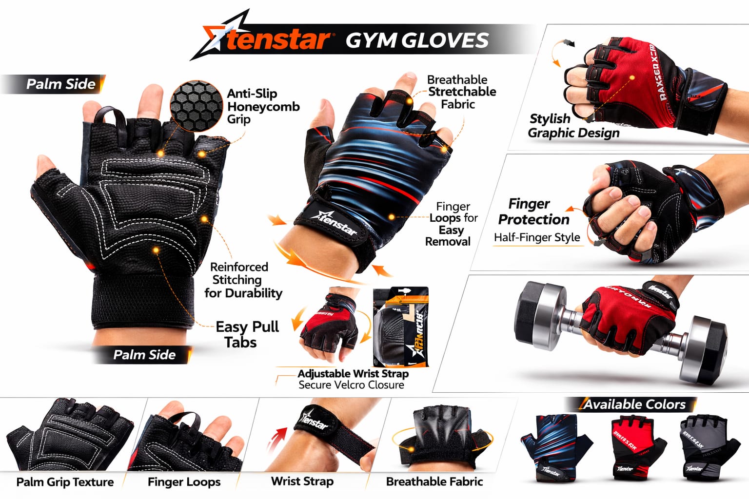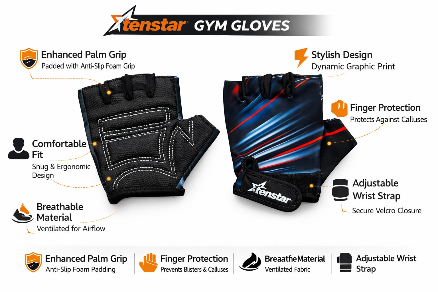 Tenstar Force Series Gym Gloves – Professional Fitness Edition