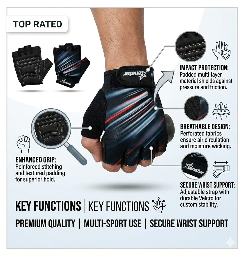 The Tenstar Force Series Gym Gloves are engineered for athletes who demand reliability and comfort during their fitness journey. Manufactured by Ajanta Sports Industries, these gloves combine durable construction with an ergonomic fit to help you “Lift your Spirits” and your weights with confidence.